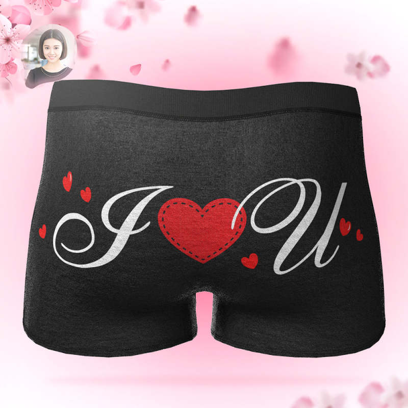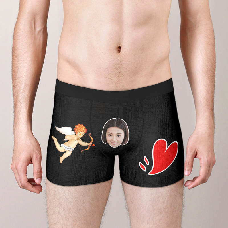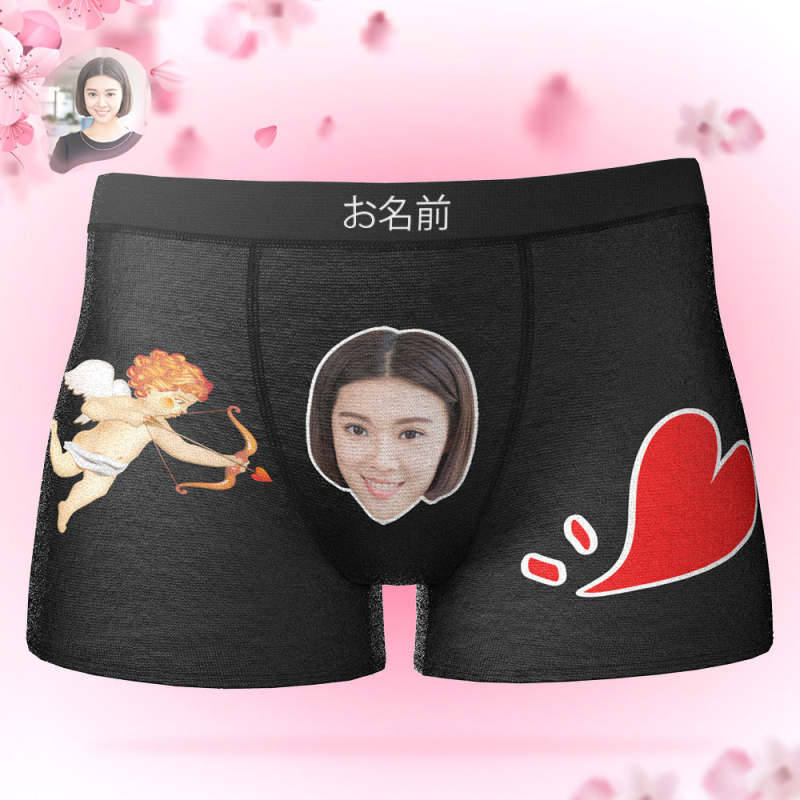 カスタムフォトボクサーパンツ-写真とテキスト入り可能なキューピッドとハート柄の下着彼氏や旦那へのバレンタインギフト
