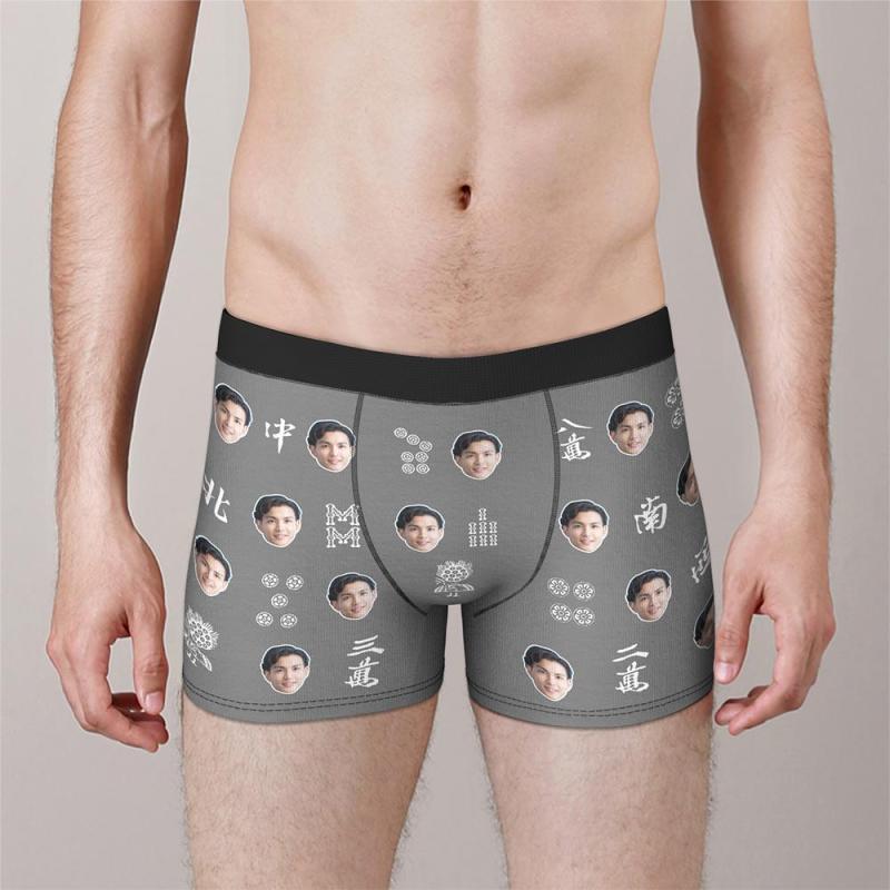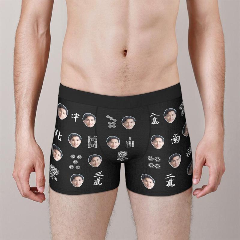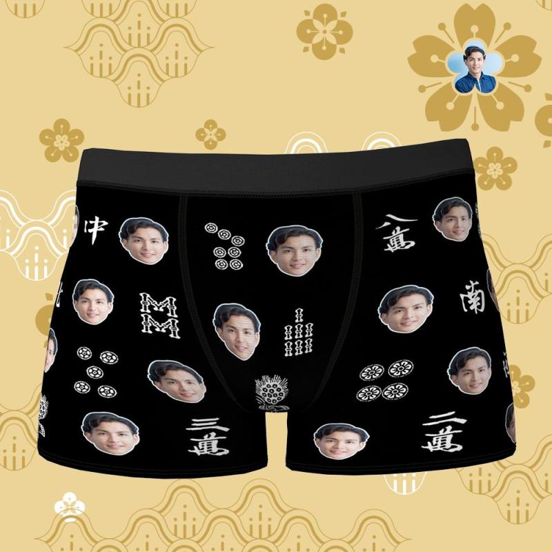 カスタムフォトボクサーパンツ-写真入り可能なマージャン柄オリジナル下着新年のプレゼント