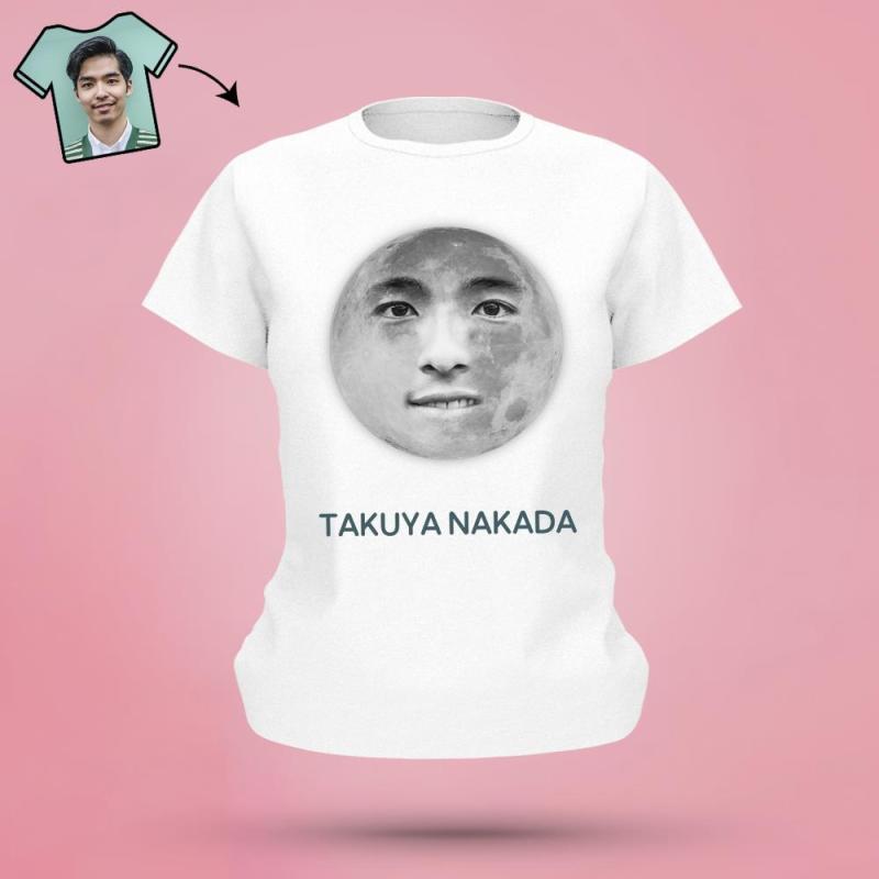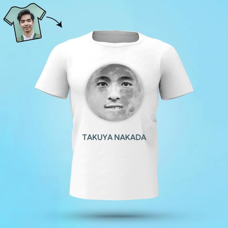 カスタム月柄のフェイスTシャツ - パーソナライズされた写真T-SHIRT - 写真と名前入れ可能な面白いプレゼント黒