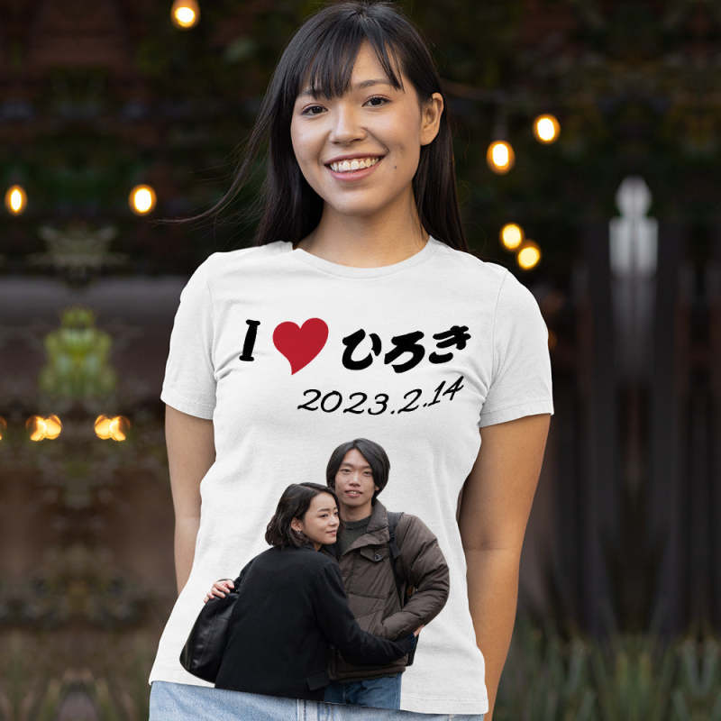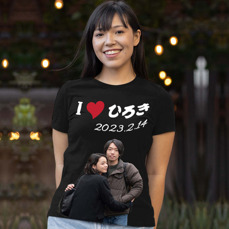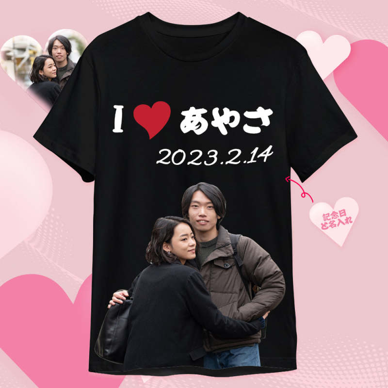 カスタムフォトTシャツ - テキストと記念日入れ可能な写真T-SHIRTギフト - 恋人へのプレゼント