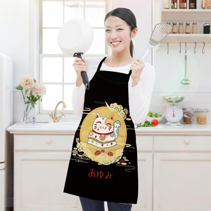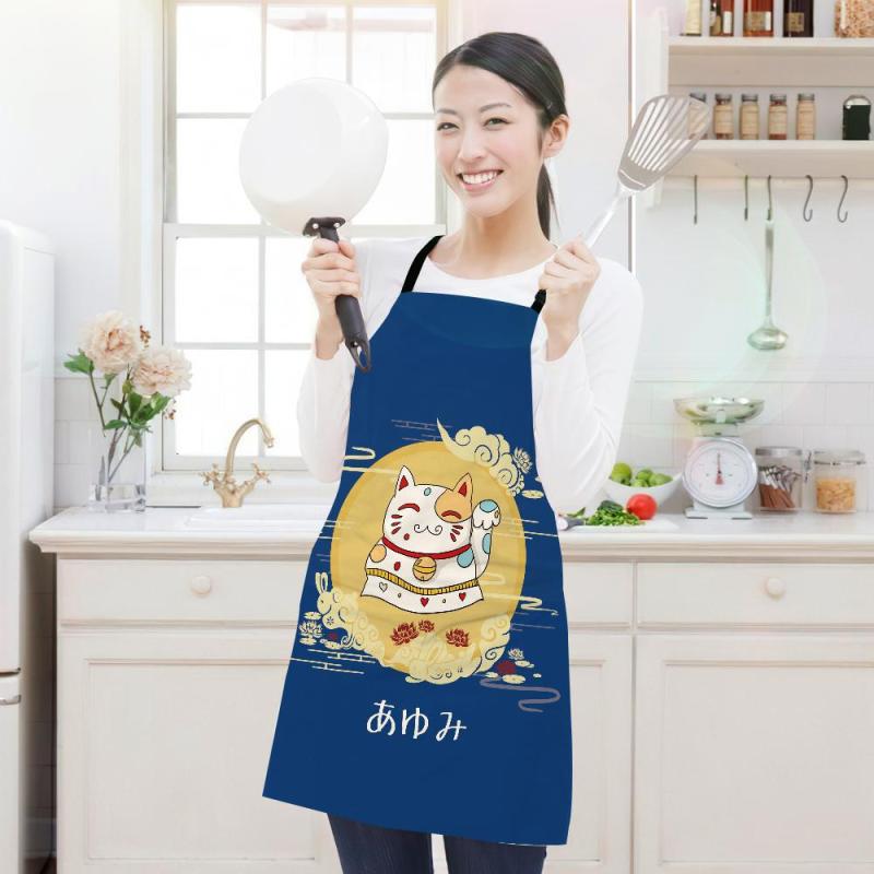 カスタム名前エプロン-写真入れ可能なキッチン首掛け式エプロンギフト-招き猫