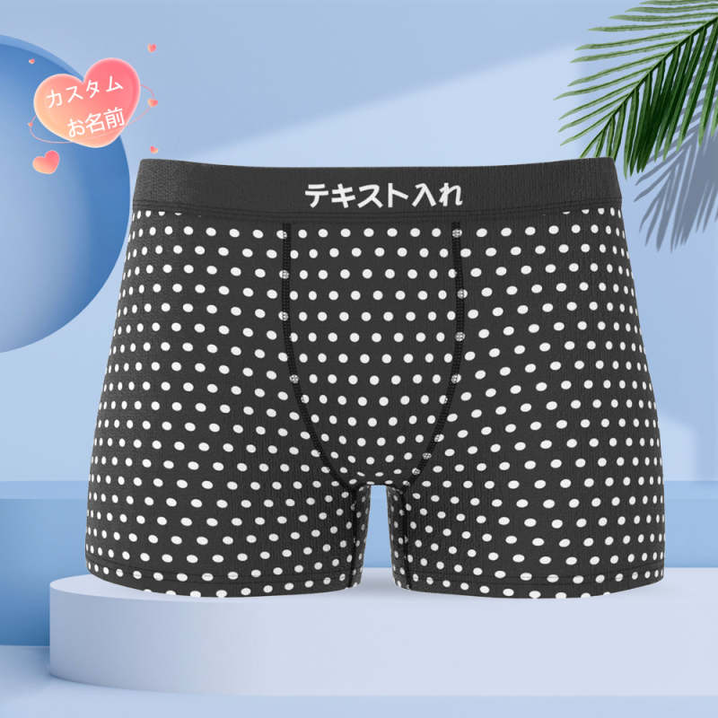 カスタム名前ボクサーパンツ-テキスト入れ可能な水玉柄のオリジナル下着ショーツプレゼント