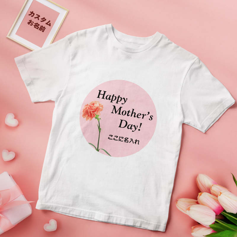 カスタム名前Tシャツ - テキスト入れ可能なT-SHIRTギフト母の日プレゼント - カーネーション