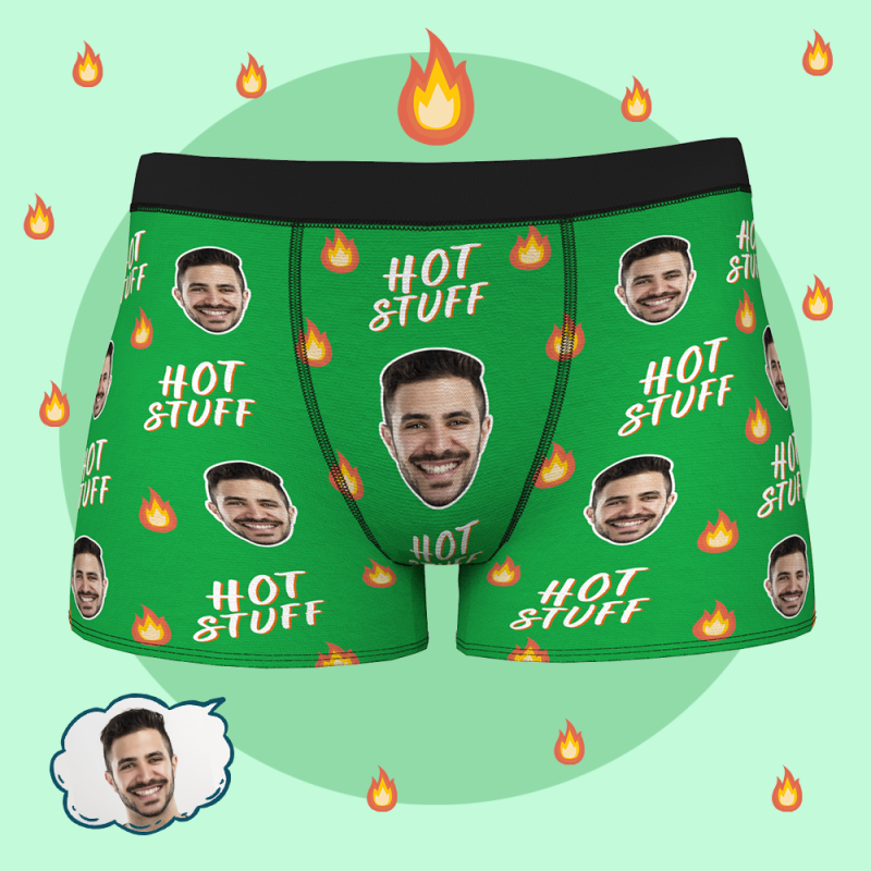 男性のためのカスタムパーソナライズされたフェイスボクサーブリーフ顔写真付きの夫のボーイフレンドの下着-HOTSTUFF