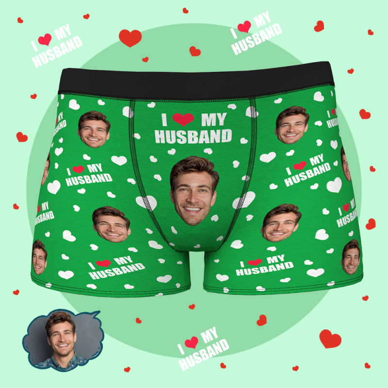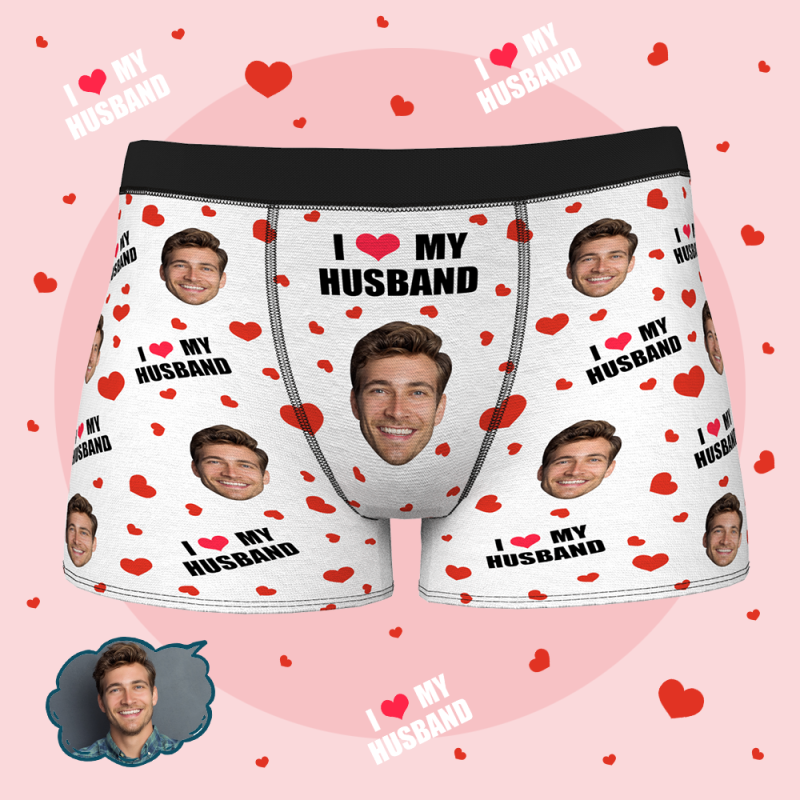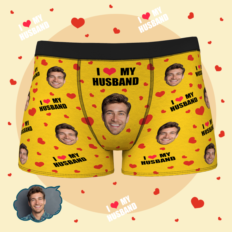 男性の夫の下着のためのカスタムパーソナライズされたフェイスボクサーブリーフ-私は私の夫が大好きです