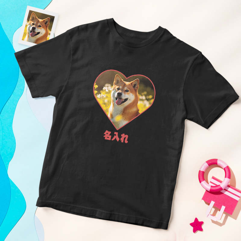 カスタム男女兼用フォトTシャツ - ペット写真や名入れ可能なハート形写真T-SHIRTプレゼント
