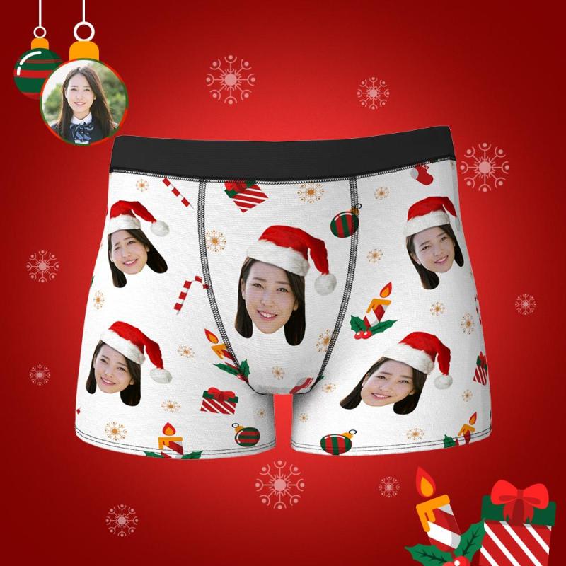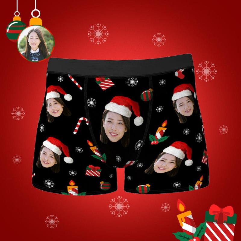 カスタム男性ボクサー-パーソナライズされた下着-写真入れ可能なキャンドルとギフト柄ボクサークリスマスのギフト