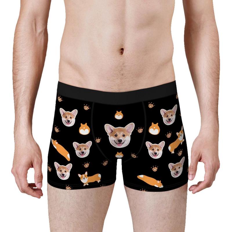 カスタム男性ボクサー-パーソナライズされた下着-ペットの顔入れ可能なコーギー犬柄のボクサーギフト