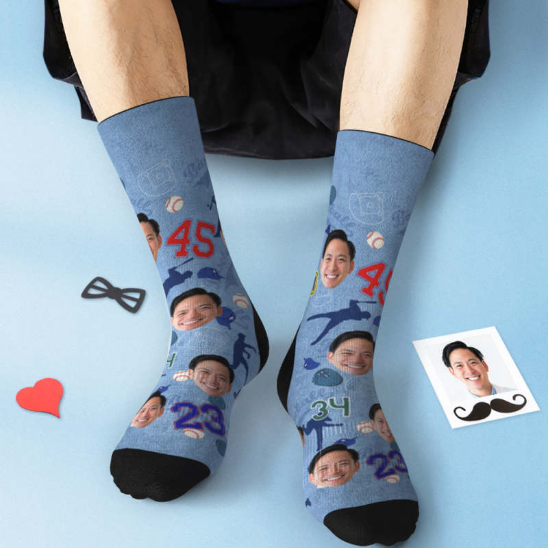 カスタムフォトソックス-写真入れ可能な父の日の靴下プレゼント-野球選手柄