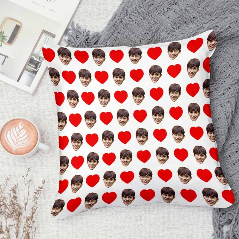 カスタムフォトクッション-写真入れ可能なオリジナル抱き枕ギフト大切な人へのバレンタインプレゼント-ハートだらけ