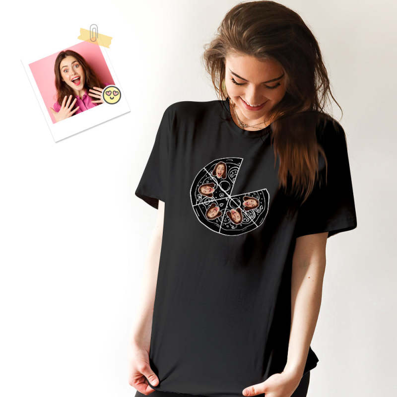 カスタムフェイスTシャツ-写真入れ可能なピザ柄の家族シャツ