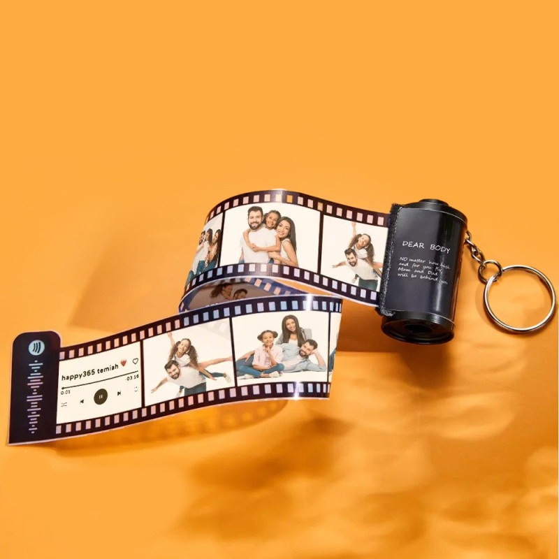 カスタムフォトフィルムロールキーホルダー-スキャン可能な音楽コード-クリエイティブな恋人への贈り物