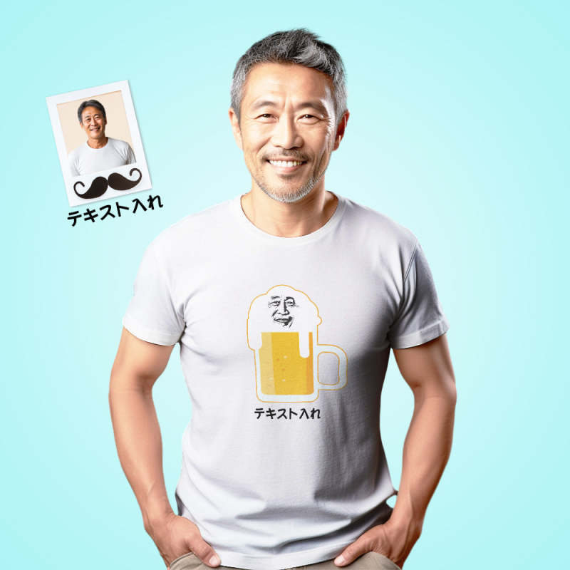 カスタムフォトTシャツ - 写真や名前入れ可能なオリジナル父の日写真T-SHIRTプレゼント - 面白いビール顔