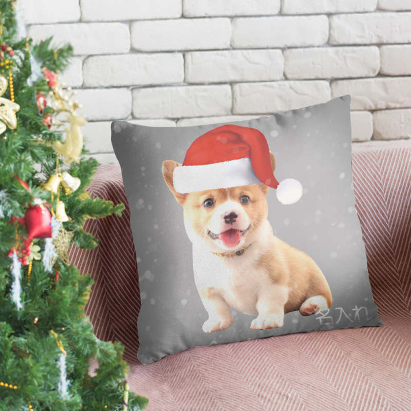 カスタムフォトクッション-可愛いペット写真入れ名入れ可能なサンタ帽子柄のオリジナル抱き枕ギフト