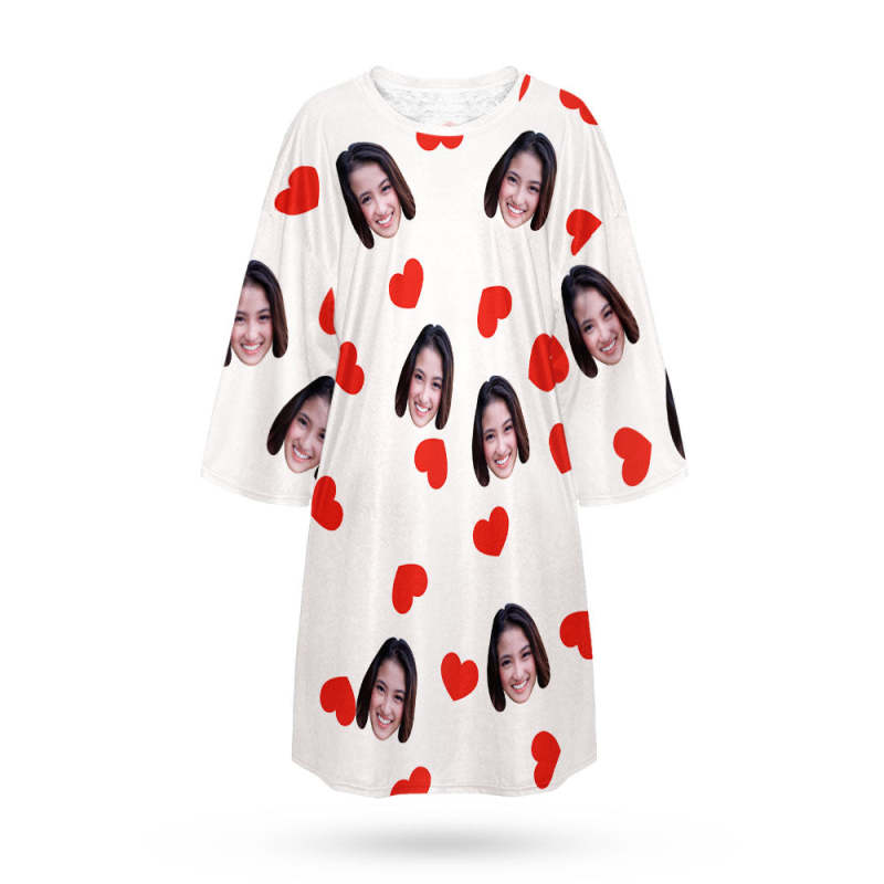 カスタム写真部屋着 - 写真入れ可能なパジャマ-オーダーメイドの女性用超特大パジャマ面しろいプレゼントハート柄