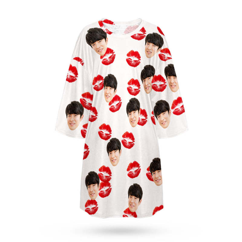 カスタム写真部屋着 - 写真入れ可能なパジャマ-オーダーメイドの女性用超特大パジャマ面しろいプレゼント唇柄