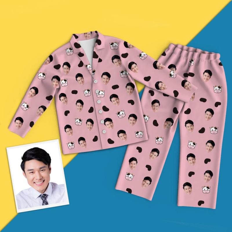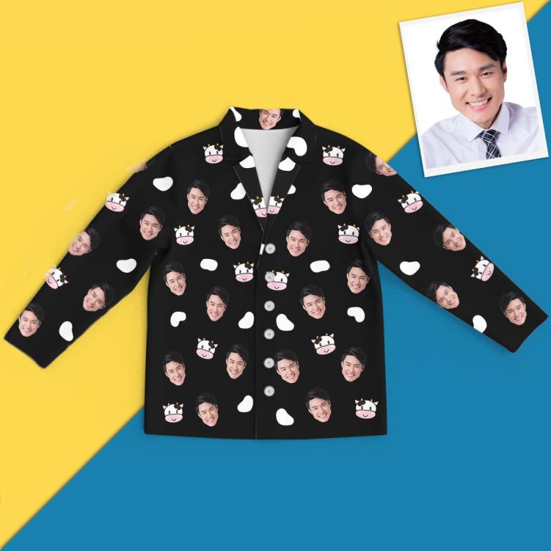 カスタムフォトパジャマ-写真入り可能なオリジナル乳牛柄パジャマ-カップルパジャマ