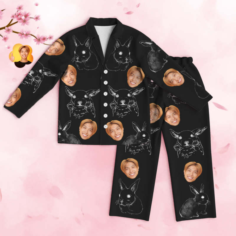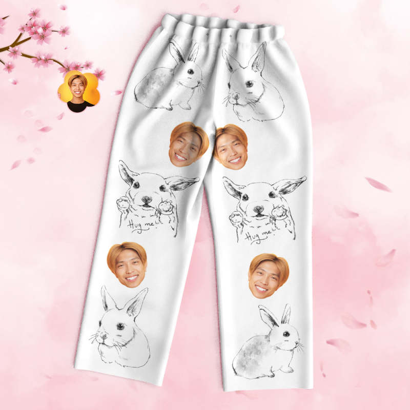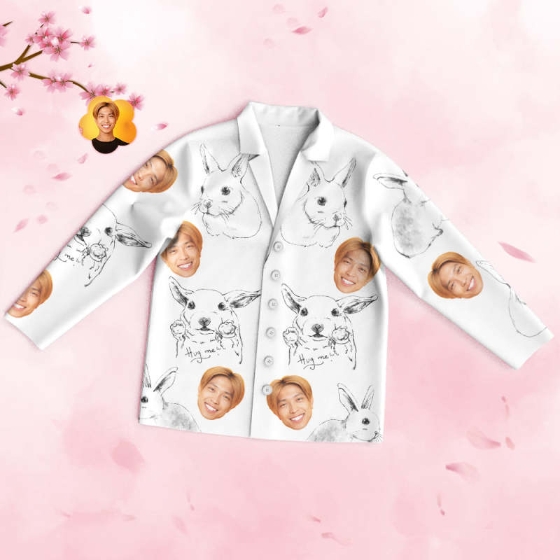 カスタムフォトパジャマ-写真入れ可能なオリジナルバレンタイン部屋着プレゼント-可愛い兎柄