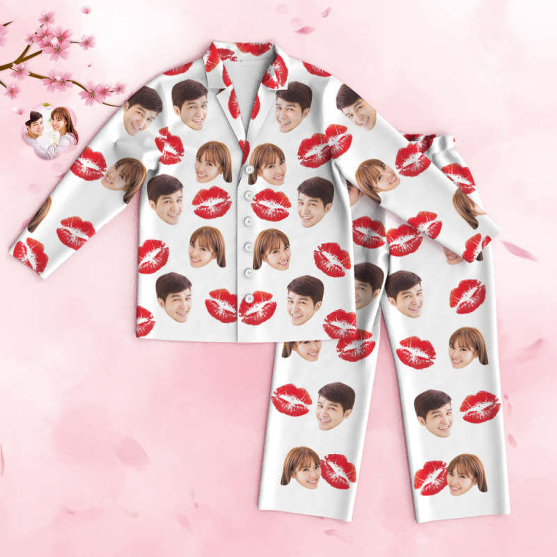 カスタムフォトパジャマ-写真入れ可能なオリジナルバレンタイン部屋着プレゼント-セクシーな唇柄