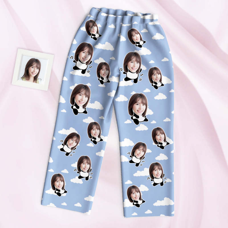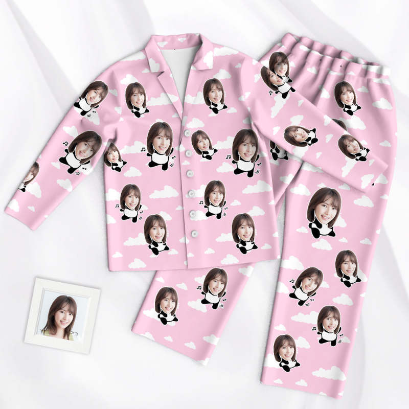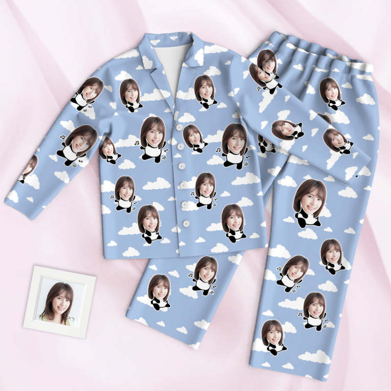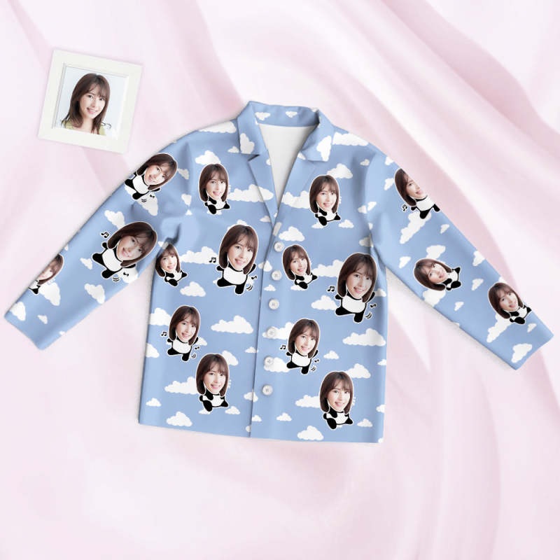 カスタムフォトパジャマ-写真入れ可能なオリジナルパンダちぎれ雲柄のパジャマプレゼント