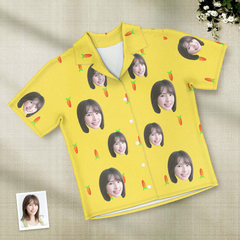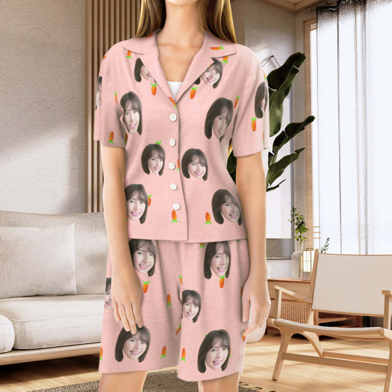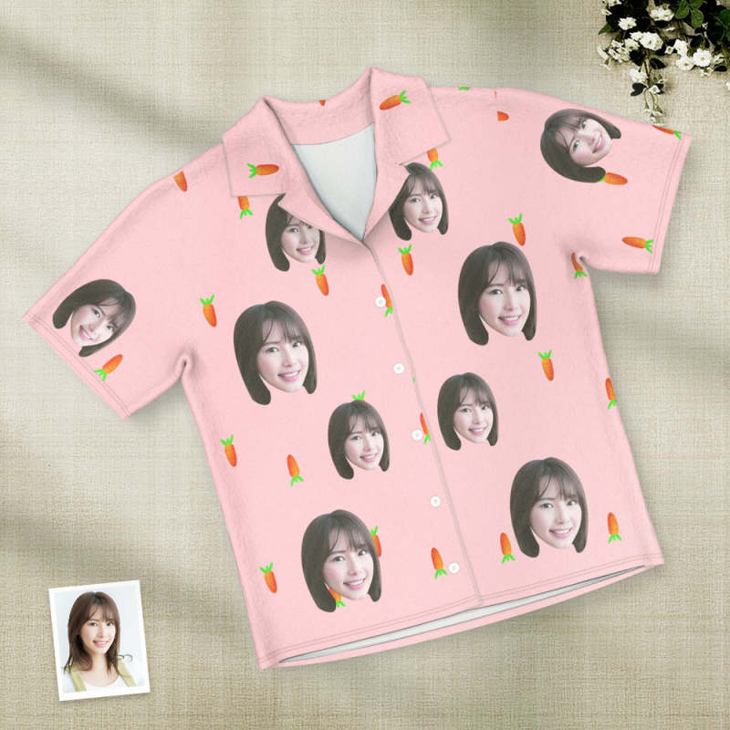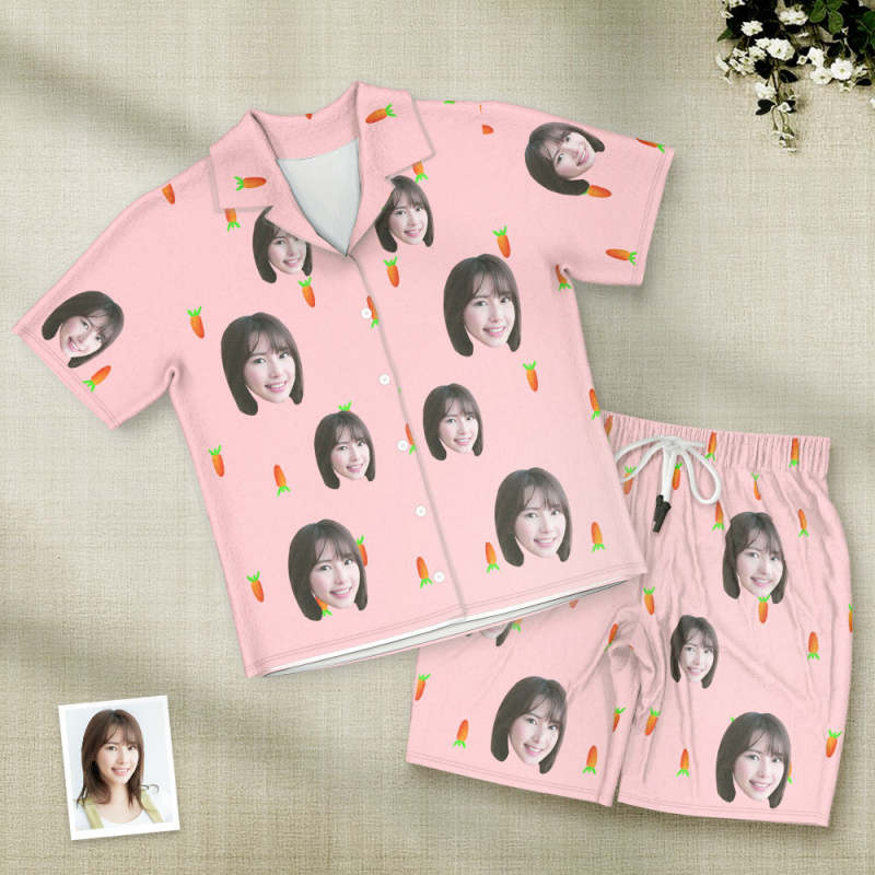 カスタムフォトパジャマ-写真入れ可能なオリジナル半袖夏の涼しいパジャマギフト-可愛いニンジン柄