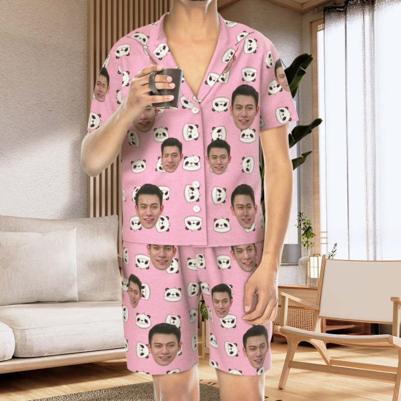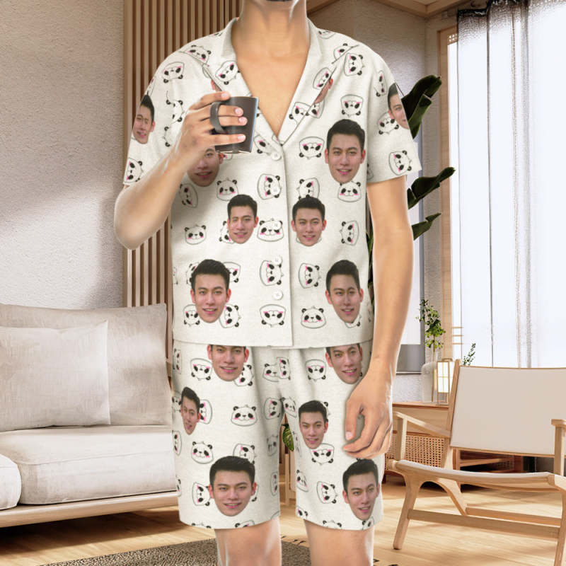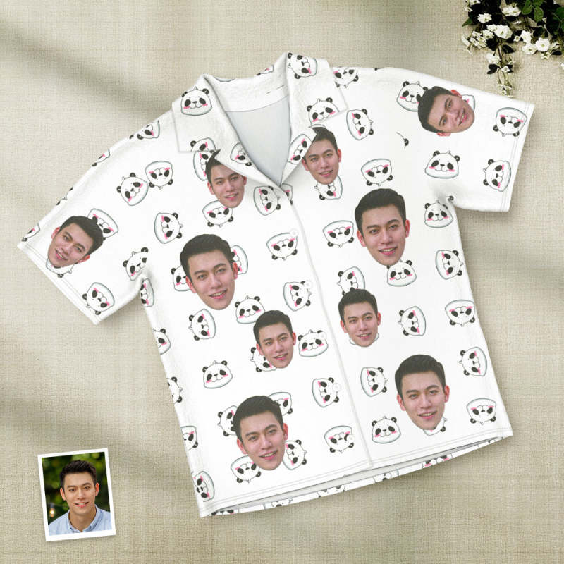 カスタムフォトパジャマ-写真入れ可能なオリジナル半袖夏の涼しいパジャマギフト-可愛いパンダ柄