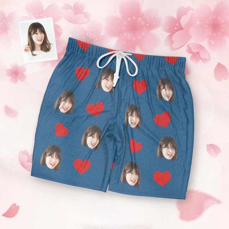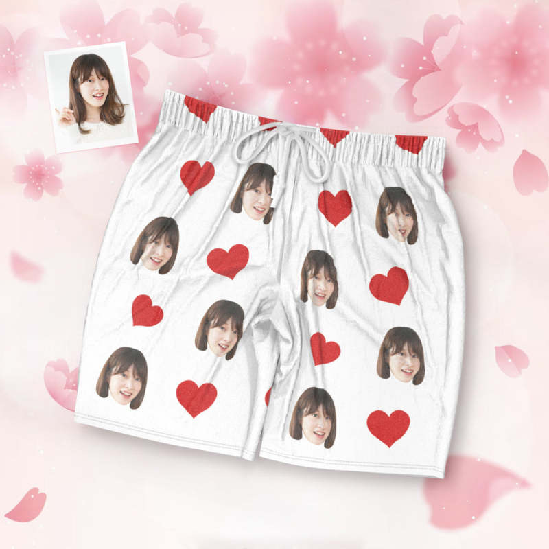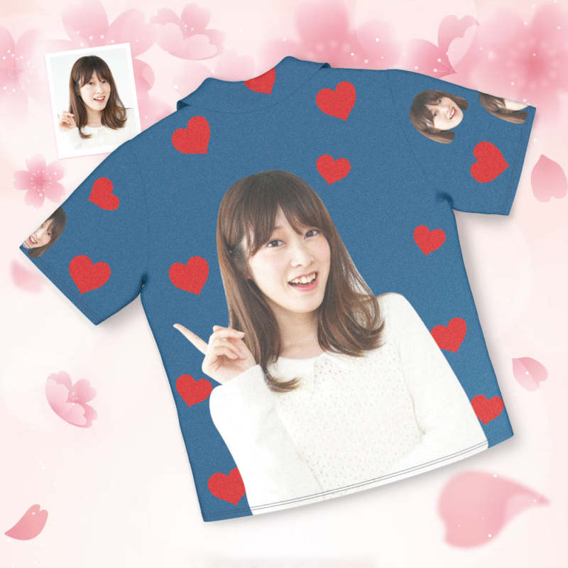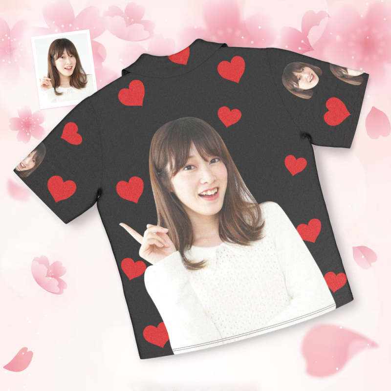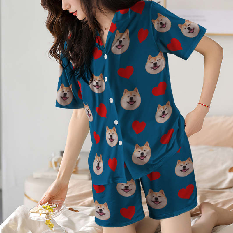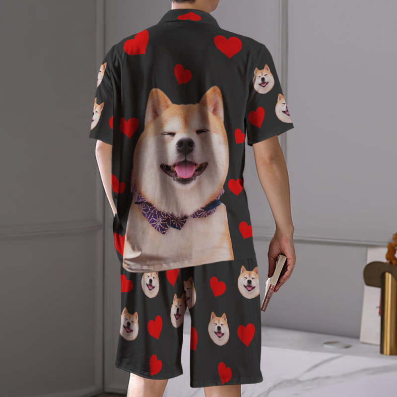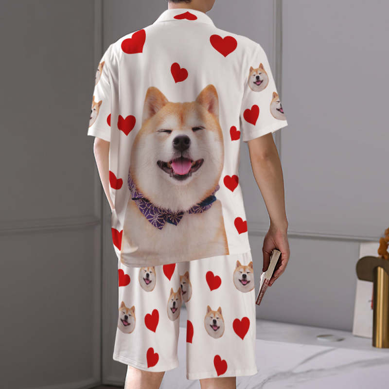 カスタムフォトパジャマ-写真入れ可能なオリジナル半袖上下セットパジャマ-ハート柄と背中の大きいサプライズ