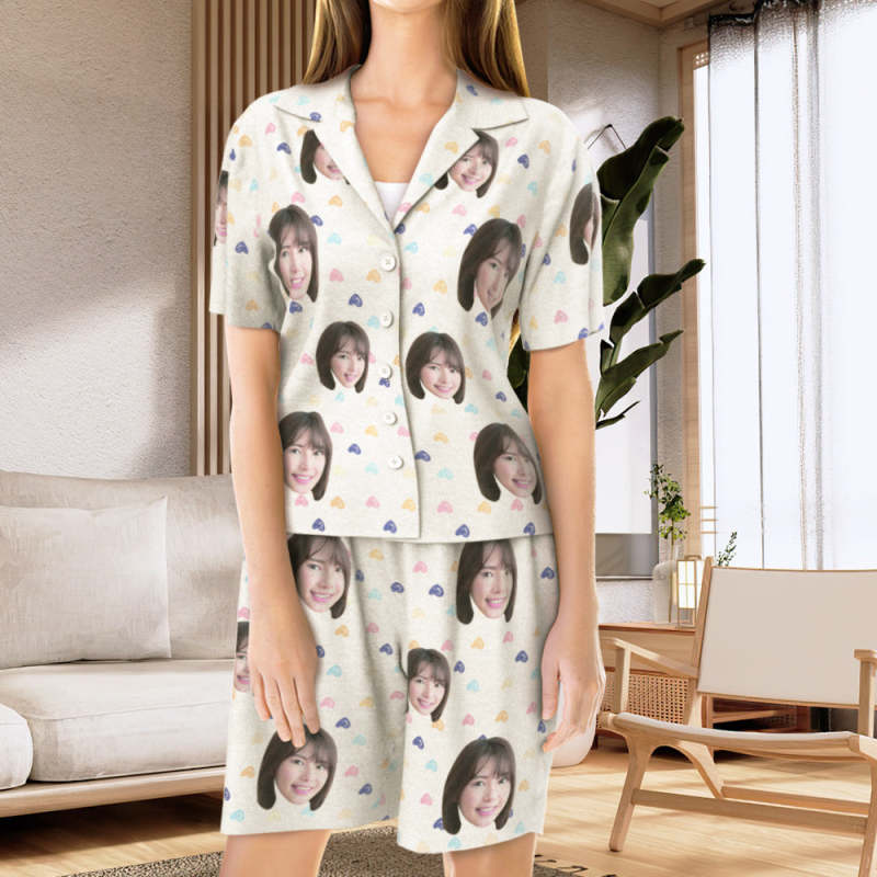 カスタムフォトパジャマ-写真入れ可能なオリジナル半袖夏の涼しいパジャマギフト-可愛いハートだらけ