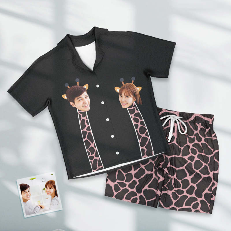 カスタムフォトパジャマ-カップル写真入れ可能なオリジナル夏の涼しい半袖パジャマギフト-かわいいキリン