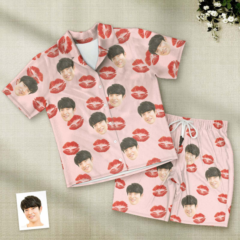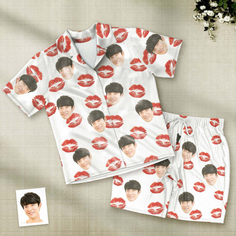 カスタムフォトパジャマ-写真入れ可能なオリジナル唇柄半袖パジャマ-夏の涼しいパジャマギフト