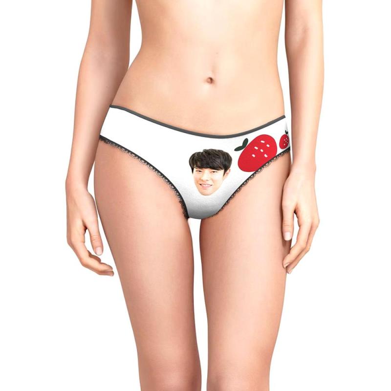 カスタムフォトパンティ-写真入れ可能ないちご二つ柄の女性用かわいい下着彼女へのプレゼント