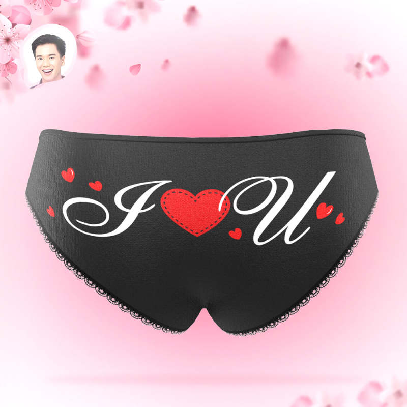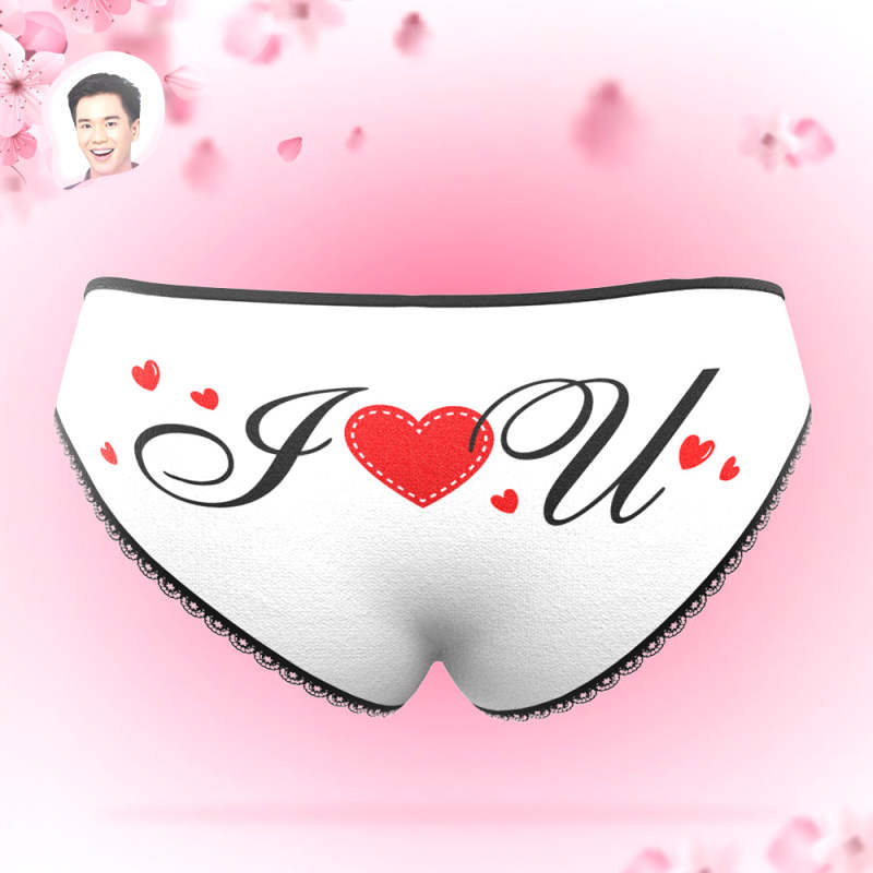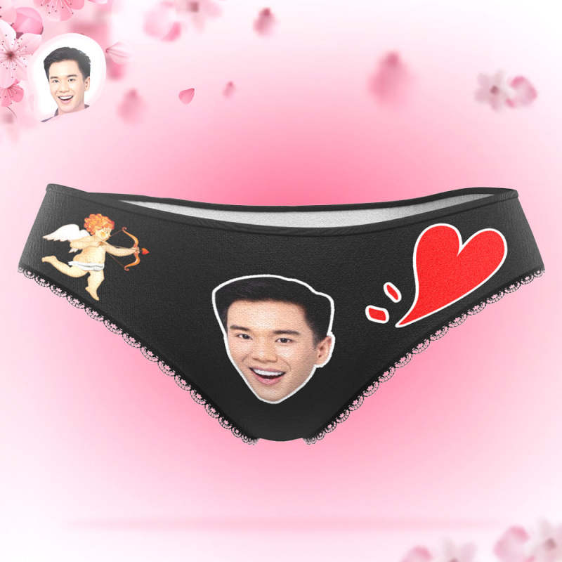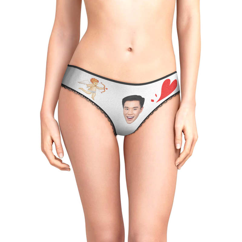 カスタムフォトパンティ-写真入れ可能なキューピッドとハート柄の女性用下着