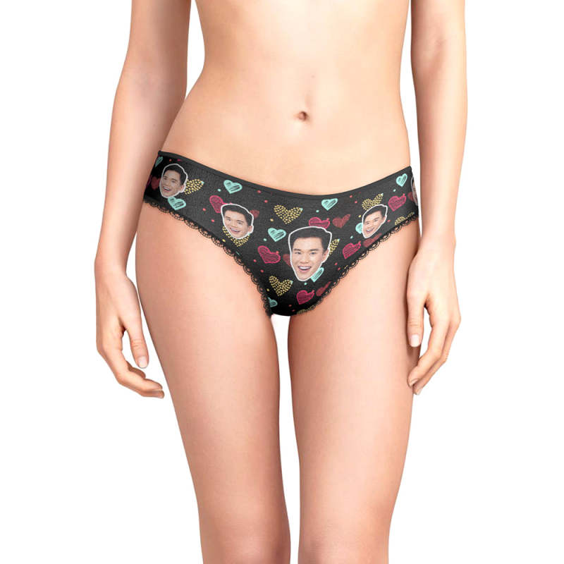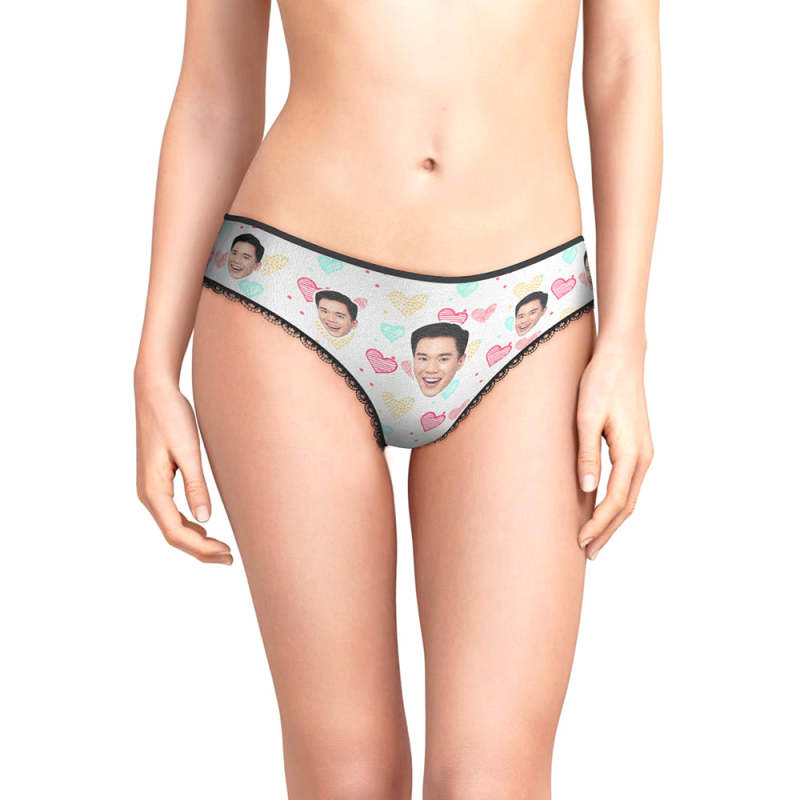 カスタムフォトパンティ-写真入れ可能なハートだらけ柄の女性用下着
