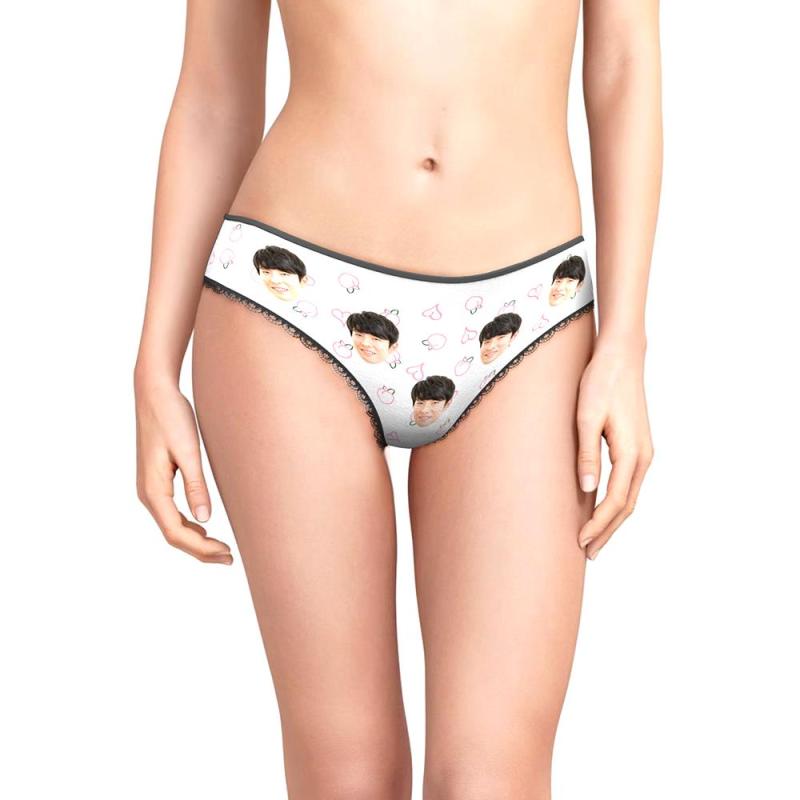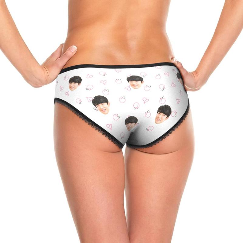 カスタムフォトパンティ-写真入れ可能な桃柄の女性用下着