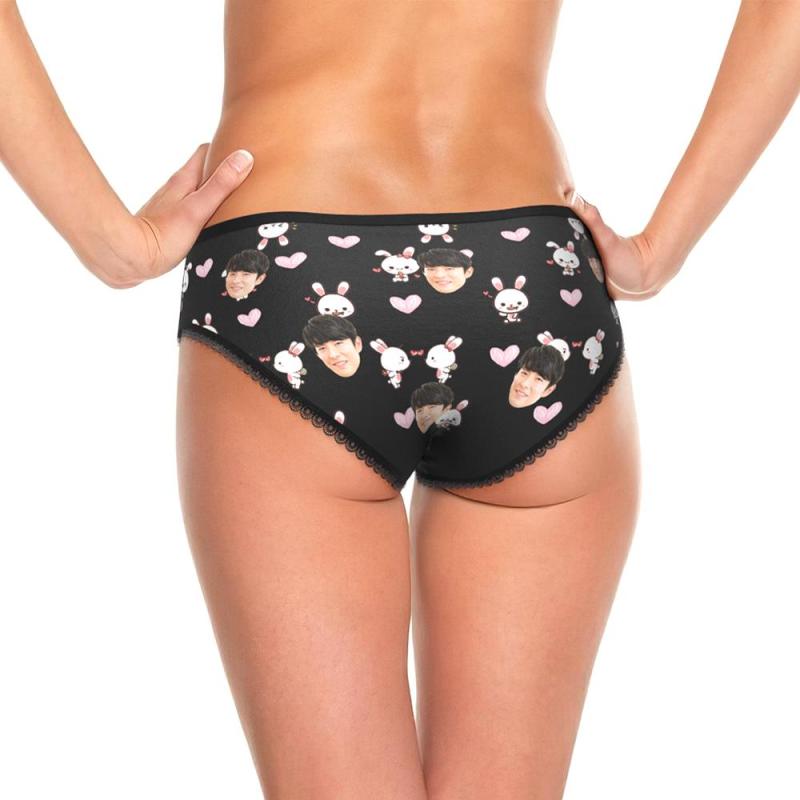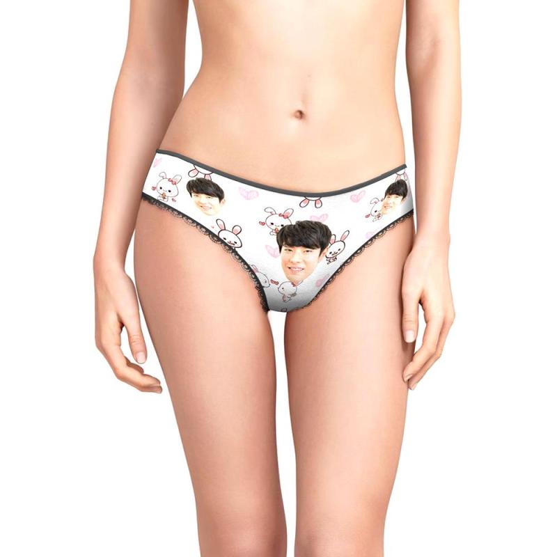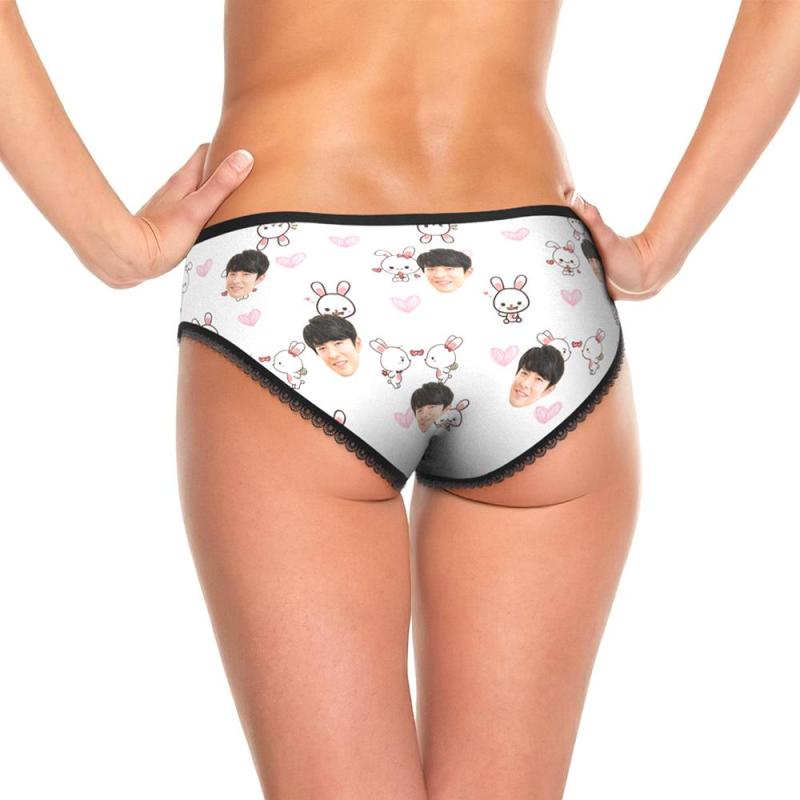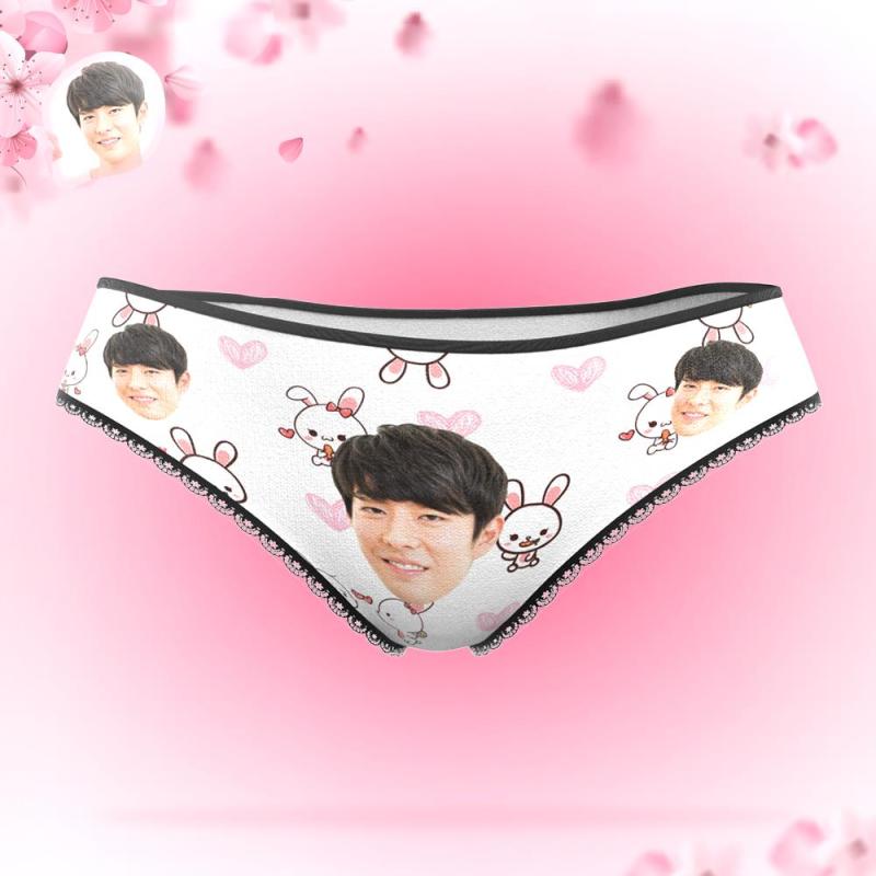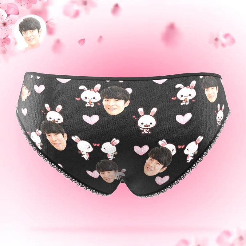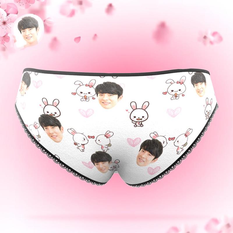 カスタムフォトパンティ-写真入れ可能なかわいい兎とハートの女性用下着