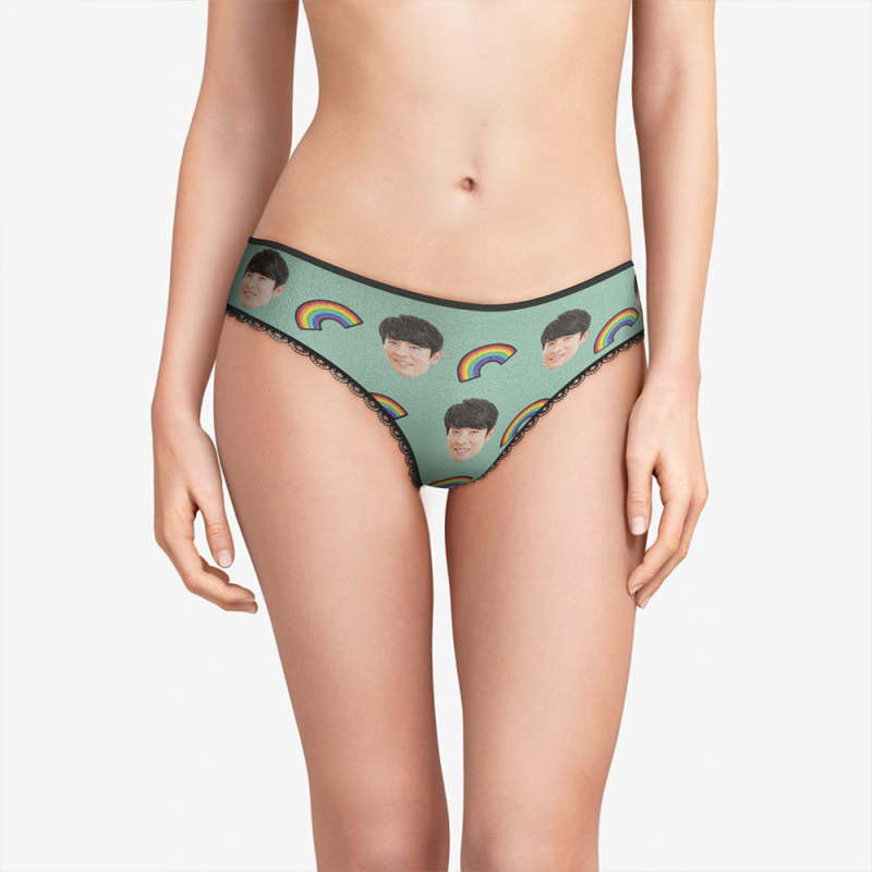 カスタムフォトパンティ-写真入れ可能なオリジナル虹柄の女性用下着
