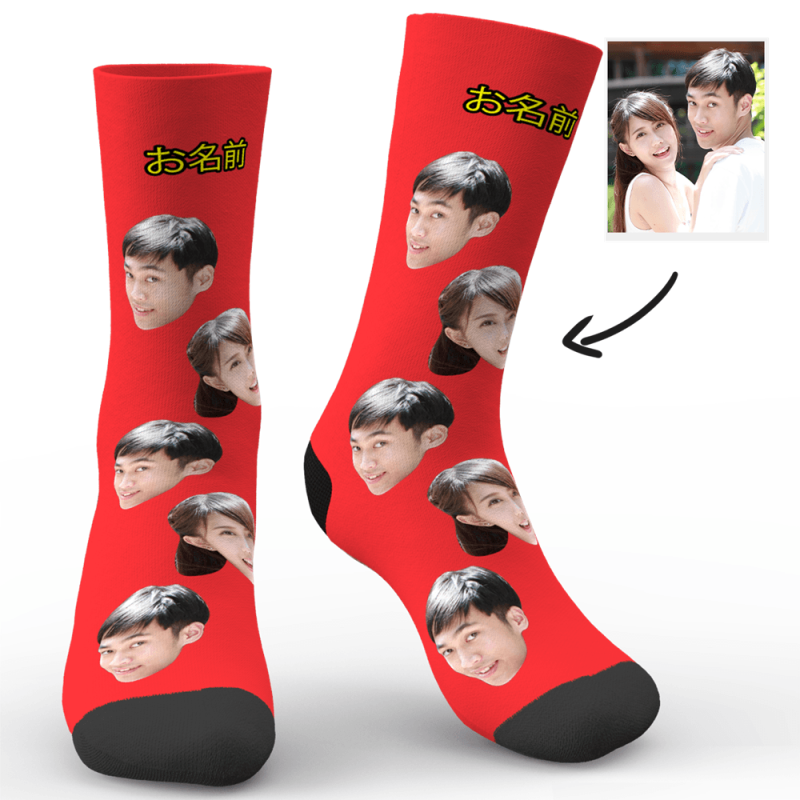 カスタムフォトソックス-写真入り名入れ可能なオリジナル靴下絵文字バレンタインプレゼント