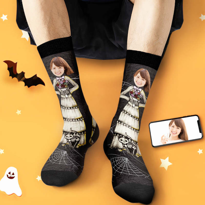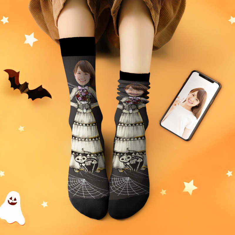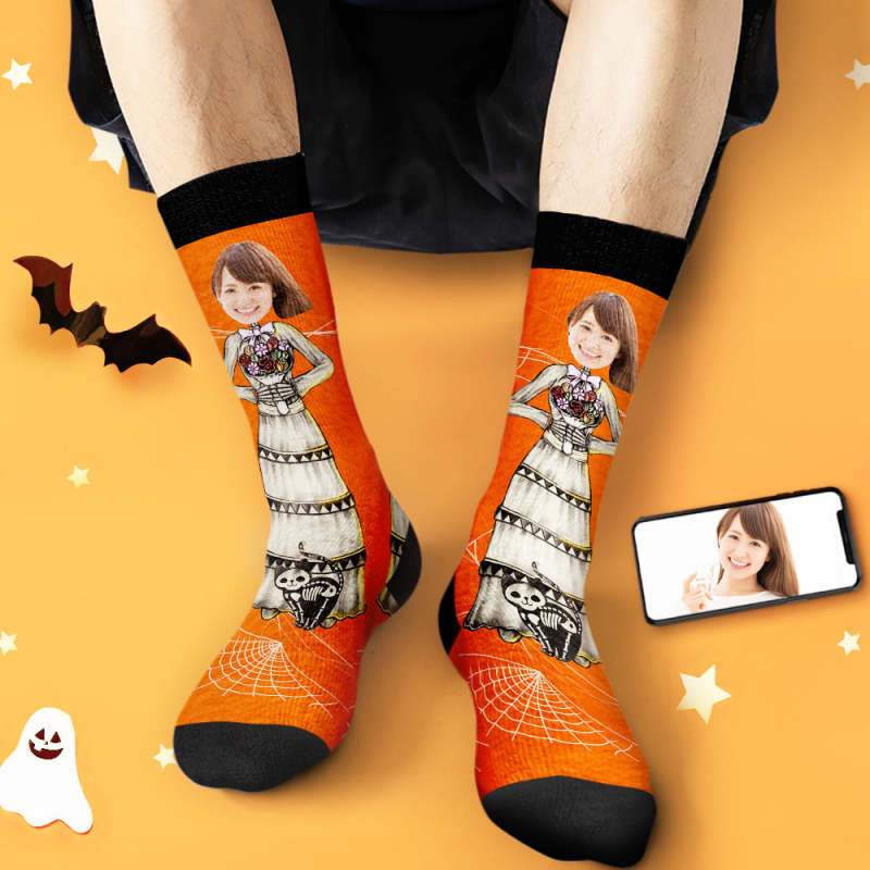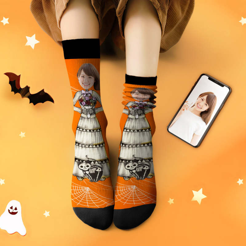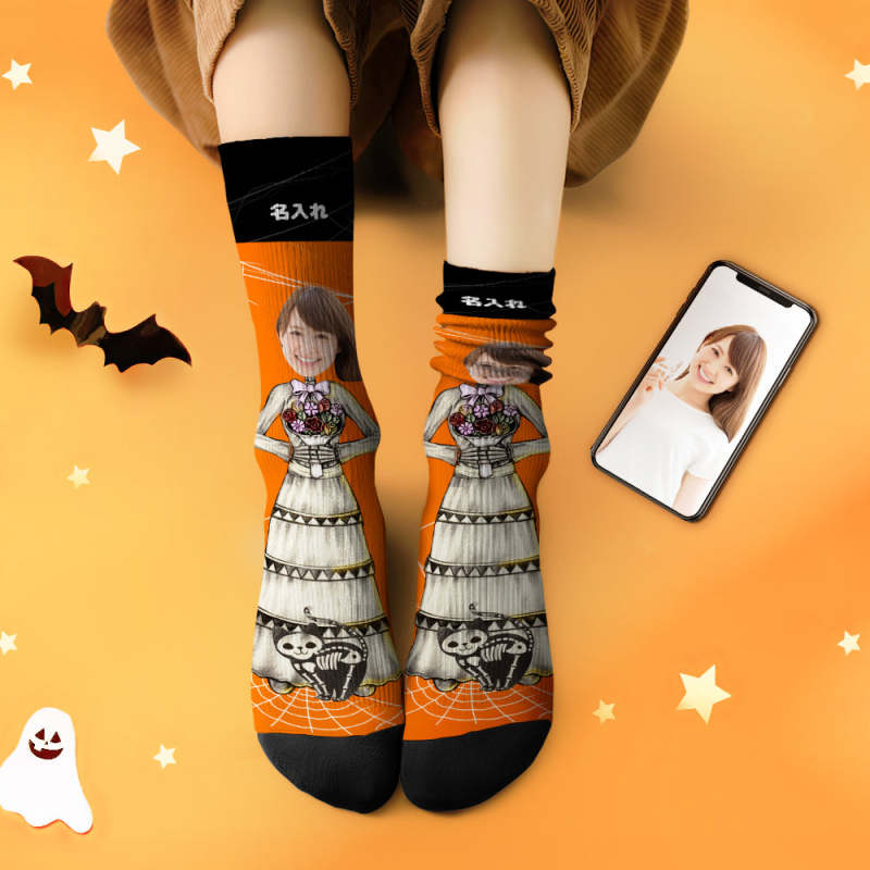 カスタムフェイスソックス-写真入れ名入れ可能な万聖の花嫁柄のハロウィンオリジナル靴下プレゼント