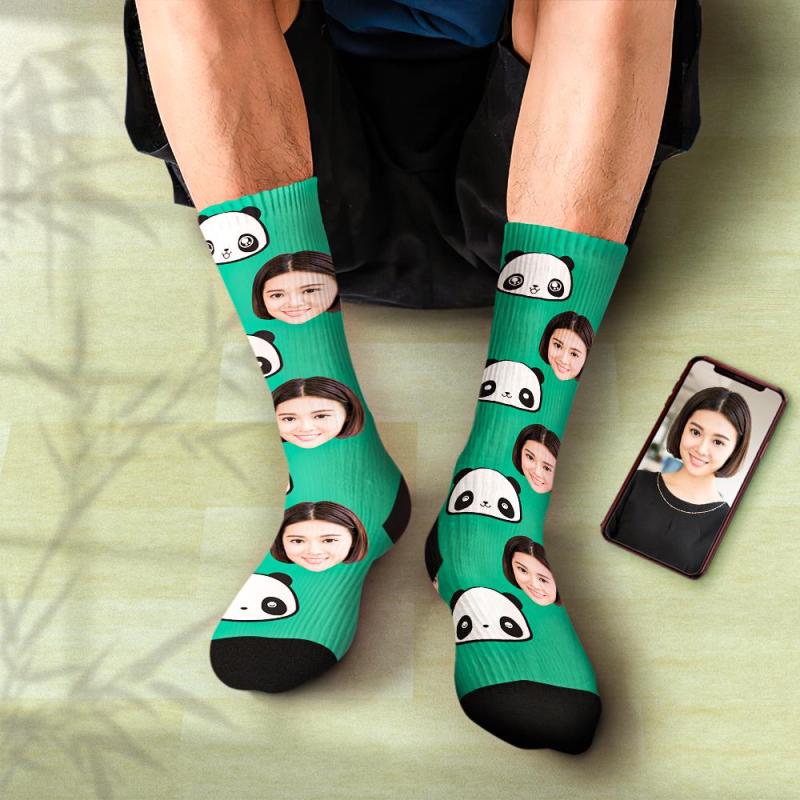 カスタムフェイスソックス-写真入り名入れ可能な超可愛いパンダ柄のオリジナル靴下