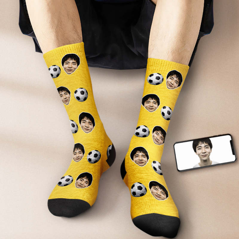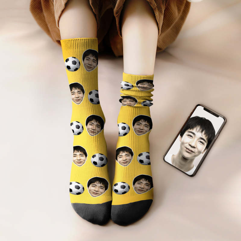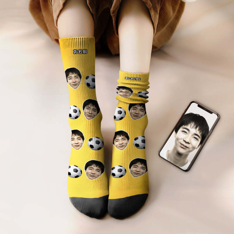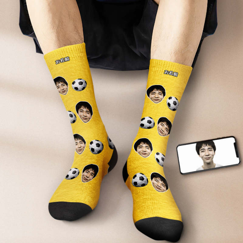 カスタムフェイスソックス-写真入り名入れ可能なサッカーボール柄のオリジナル靴下プレゼント