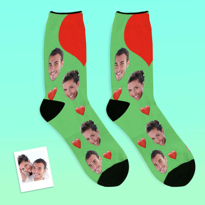 カスタムフォトソックス-写真入り名入れ可能なオリジナル靴下ハートマーク絵文字