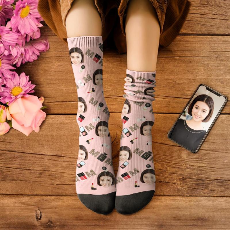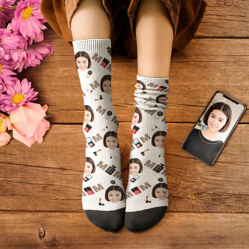 カスタムフェイスソックス-写真入り名入れ可能なオリジナル靴下母の日プレゼント-様々な化粧品柄