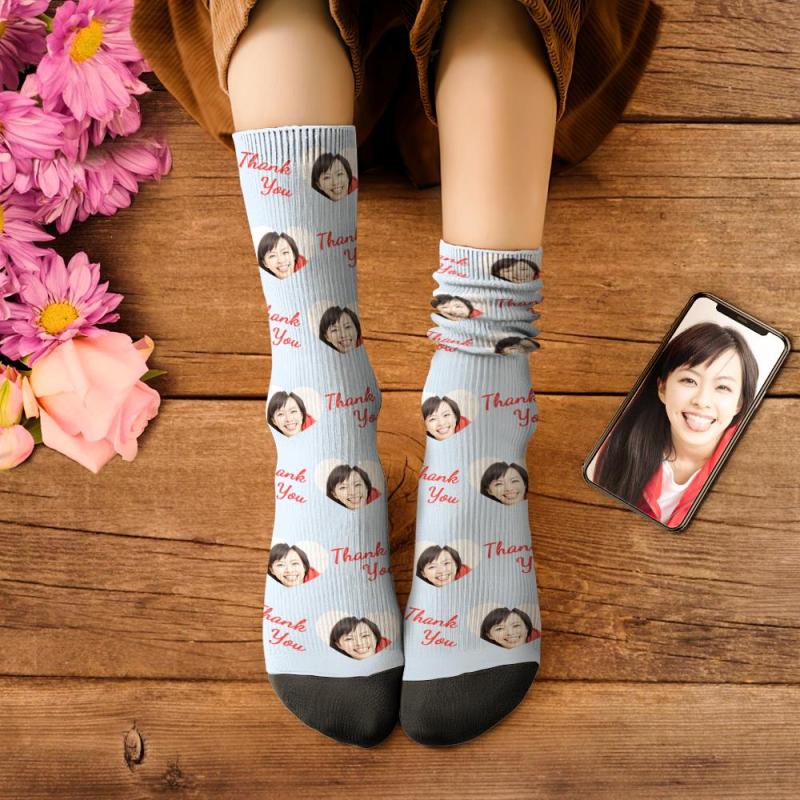 カスタムフェイスソックス-写真入り名入れ可能なオリジナル靴下母の日プレゼント-ありがとう