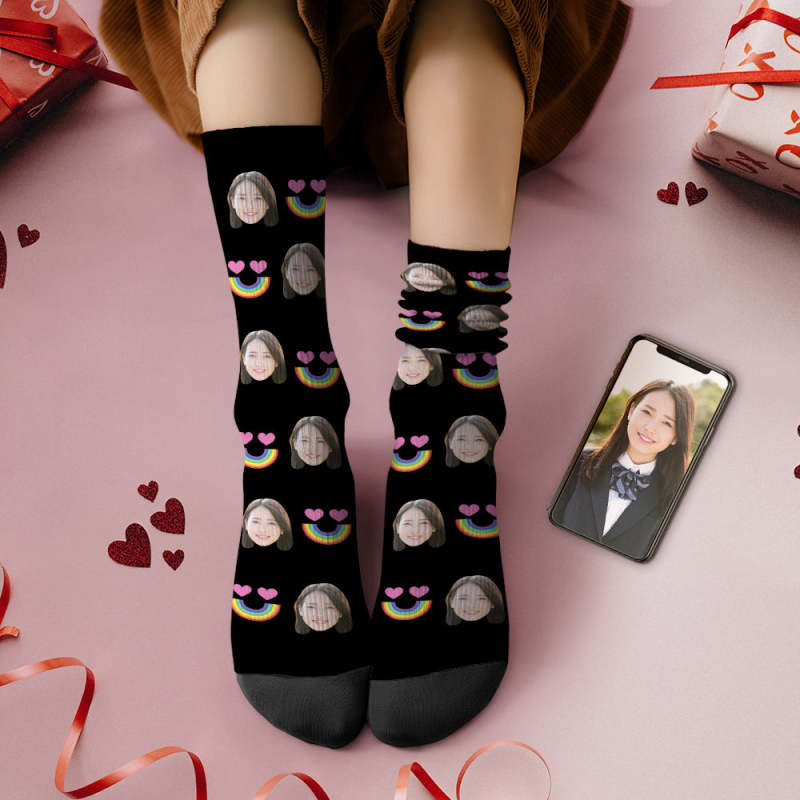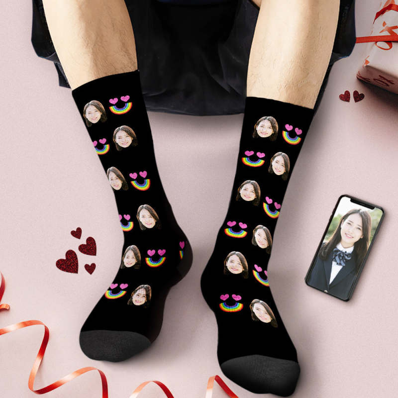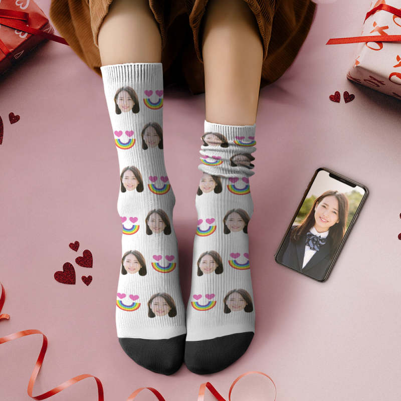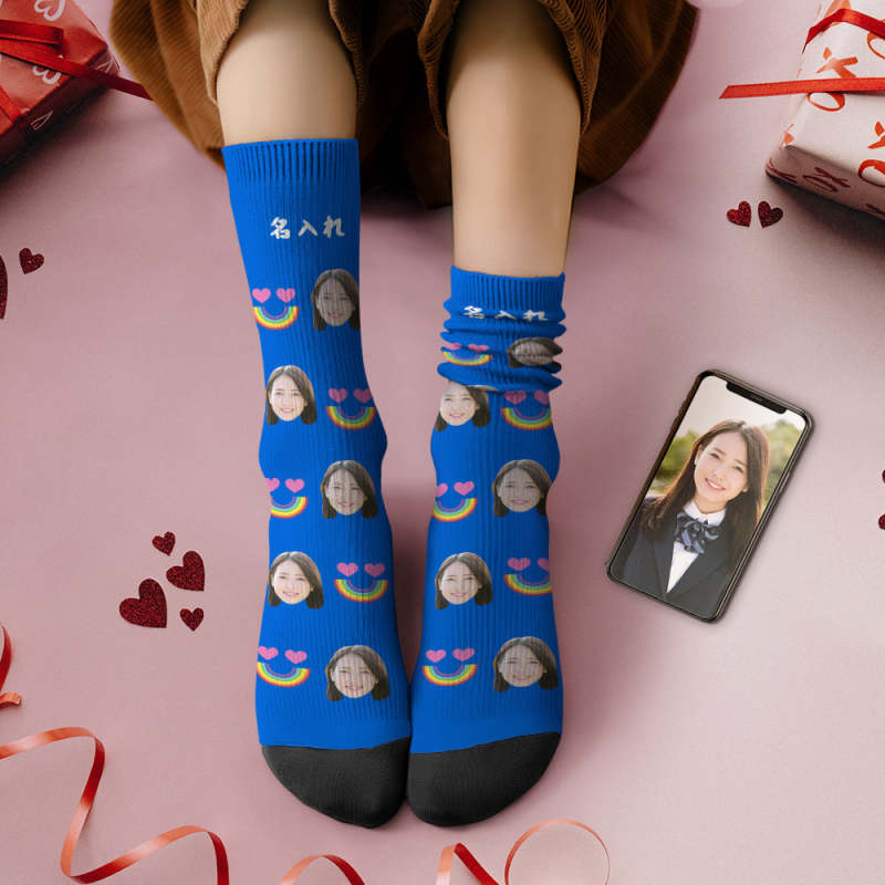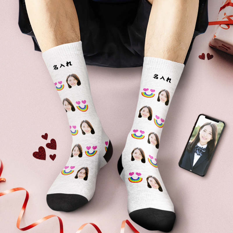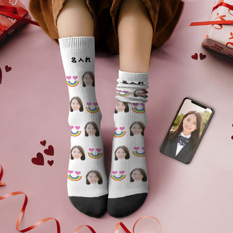 カスタムフェイスソックス-写真入れ名入れ可能なオリジナルバレンタイン靴下プレゼント-虹の笑顔柄