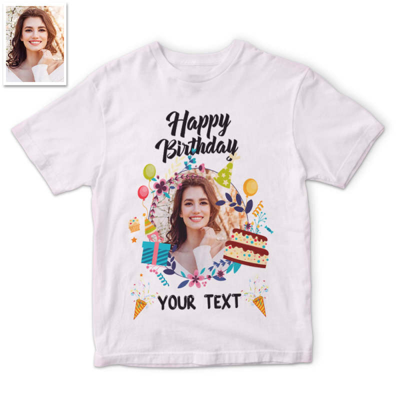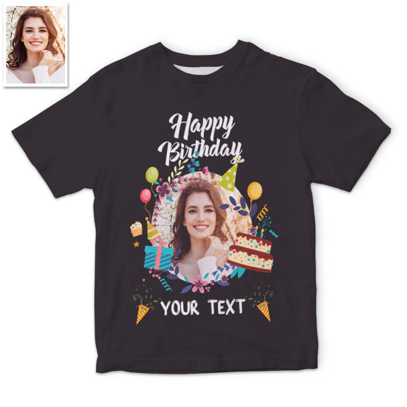 カスタム男女兼用フォトTシャツ - 写真と祝い言葉入れ可能な誕生日T-SHIRTプレゼント
