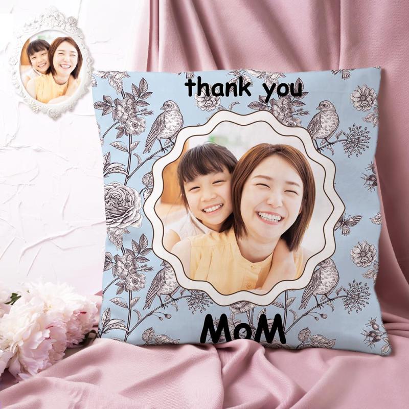 カスタム写真クッション-写真入れ可能な花と鳥柄の抱き枕お母さんへの母の日プレゼント
