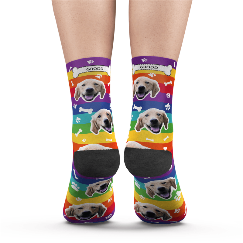 カスタム レインボー ソックス犬の骨の足の印刷要素をテキストで