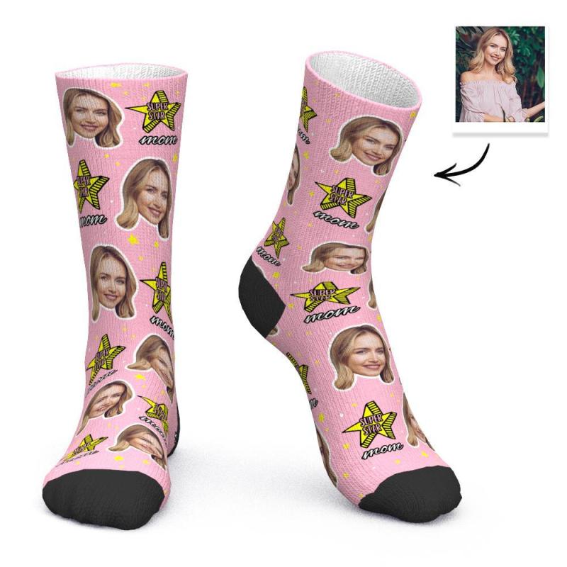 カスタムフォトソックス-写真入り可能なオリジナル靴下母の日ギフト-Super Star Mom
