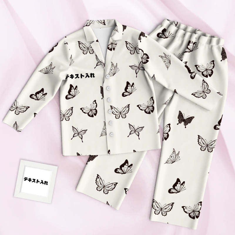 カスタム名前パジャマ-テキスト入れ可能なオリジナル蝶柄のパジャマプレゼント