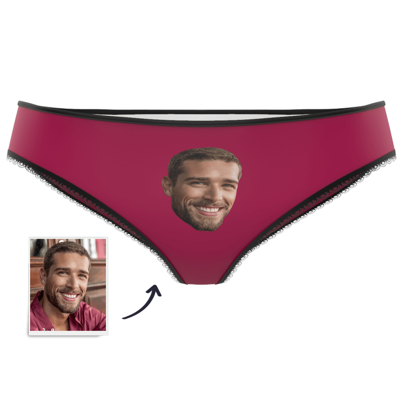 カスタム写真入り下着、赤い唇の模様がプリントされた、カップルへのユニークでセクシーなギフト。写真入りのパーソナライズされたバレンタインデー用下着。